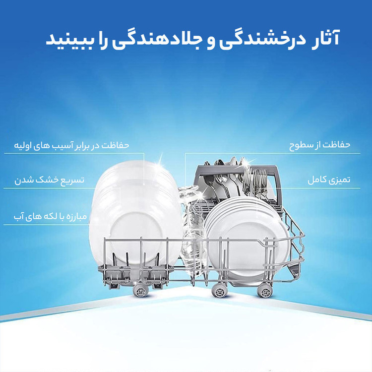 جلا دهنده یا براق کننده ظروف محصولی است که عمدتا لکه های آب بجامانده بر روی صفحات، کاسه، کارد و چنگال ،ظروف شیشه ای و استیل را از بین می برد.در فرایندشست وشوی ظروف درخشش یکی از مهمترین ویژگی است که در هیچ یک از دستگاه ها یا مواد شوینده در نظر گرفته نشده است بنابراین، می توان گفت که جلا دهنده فینیش یک پولیش ویژه برای ظروف به حساب می آید همچنین در خشک کردن ظروف نیز بسیارمفید است. شما می توانید جلا دهنده فینیش را در ماشین ظرفشویی خود برای رسیدن به نتایج موثر در شستشو استفاده کنید.این محصول تمیز کننده و درخشان کننده،از بین برنده لک روی صفحات، فنجان، کارد و چنگال و تمامی ظروف می باشد.