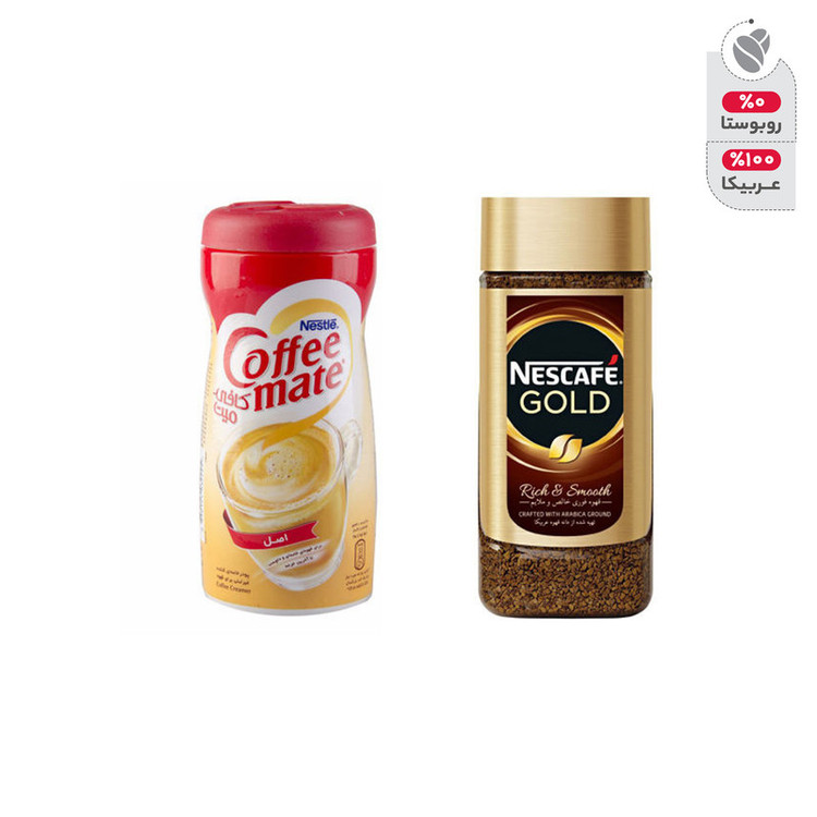 قهوه فوری نسکافه مدل GOLD مقدار 200 گرمی به همراه کافی میت نستله 400 گرمی