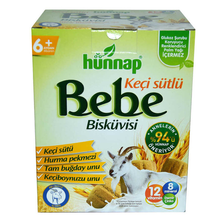 + موارد بیشتربیسکویت هوناپ رژیمی شیر بز HUNNAP یا بیسکویت bebe با فرمولاسیون ویژه ساخته شده از شیر بز و ضد آلرژی می باشد. بیسکوییت هوناپ یا بیسکویت شیر بز رژیمی سالم به دلیل دارا بودن 12 نوع ویتامین شامل تمام ویتامین های گروه ب ، D3 ، آهن و زینک, یک میان وعده کامل برای کودکان 6 ماه به بالا می باشد. بهترین گروه سنی برای استفاده از بیسکویت هوناپ شیر بز bebe هوناپ 6 تا 36 ماهگی است.