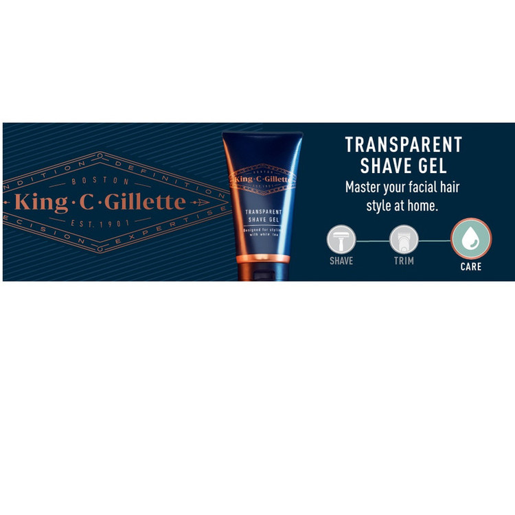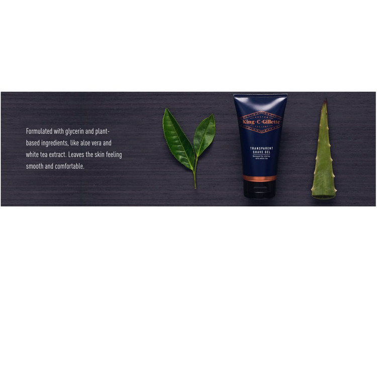 خط تولید ( King.C.Gillette ) شامل مجموعه کاملی از ابزارهای دقیق و محصولات مراقبت با کیفیت است که هر مردی را قادر می سازد سبک منحصر به فرد خود را ایجاد کند . با ژل اصلاح شفاف King.C.Gillette که دارای عصاره آلوئه ورا و چای سفید و گلیسیرین است، از سوزش پس از اصلاح جلوگیری کنید و احساس خنکی را پس از اصلاح تجربه کنید. از این ژل اصلاح با طراوت , برای آبرسانی به پوست خشک صورت قبل از اصلاح برای اصلاح راحت تر با خطر کمتر تحریک پوست پس از اصلاح استفاده کنید. فرمول شفاف این محصول به این معنی است که میتوانید دقیقاً محل قرار دادن تیغ خود را ببینید تا از اشتباهات اصلاح، از جمله بریدگیها جلوگیری کنید و کمک کنید تا موهای صورتتان تا حد امکان مرتب به نظر برسد. ژل اصلاح شفاف King.C.Gillette حاوی روان کننده های ملایم است که به تیغ اجازه می دهد تا به آرامی روی پوست شما سر بخورد همچنین یک لایه محافظ و ضد اصطکاک بین تیغه و پوست شما ایجاد کرده که در برابر سوزش تیغ از پوست شما محافظت می کند. رایحه های دیگری با رایحه اصلی King.C.Gillette، که دارای نت هایی از نعناع هندی، چوب صندل، یاس، نعناع فلفلی و فلفل صورتی برای ایجاد رایحه ای مدرن و مردانه است ترکیب شده است.