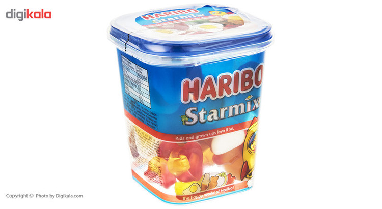 یک ظرف پر از نوشابههای پاستیلی متنوع Starmix «هاریبو» منتظر شماست. هاریبو این امکان را به مخاطبینش داده تا پاستیلها را در ظرف با خود به همه جا ببرند و مدت زیادی آن را داشته باشند بدون اینکه تمام شود! هاریبو در زمینه تولید آبنبات و آدامس هم فعال است و در سوپرمارکتهای ایرانی هم به وفور یافت میشود. علاقه به پاستیل محدودیت سنی ندارد و کودکان و بزرگسالان همه این خوراکی را دوست دارند و اغلب در سبد تنقلات دیده میشود. بسته 175 گرمی هاریبو در بستهبندی سطلی پلاستیکی قر رگرفته تا بتوانید آن را مدت زیادی داشته باشید و با خود به همه جا ببرید.