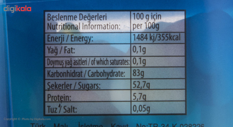 ارزش غذایی در هر 1/4 بسته پاستیل(20 گرم): انرژی: 71 کیلوکالری قند: 10.01 گرم چربی: 0.02 گرم نمک: 0.01 گرم اسیدهای چرب ترانس: 0 گرم