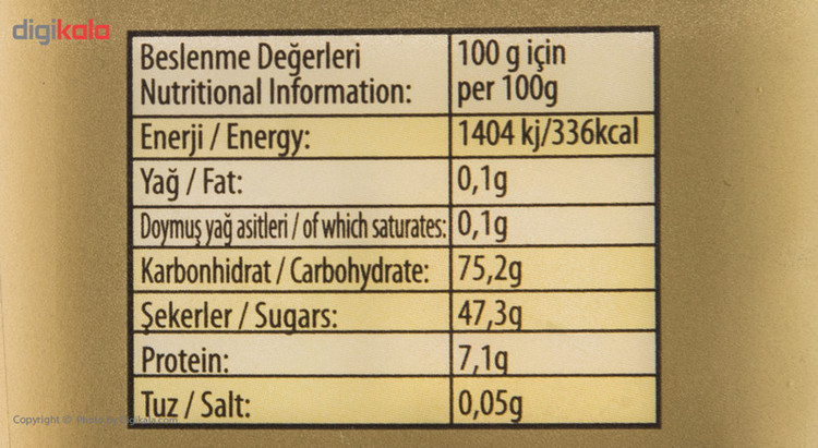 ارزش غذایی در هر 10 عدد پاستیل (20 گرم): انرژی: 67.2 کیلوکالری قند: 9.41 گرم چربی: 0.01 گرم اسیدهای چرب ترانس: 0 گرم
