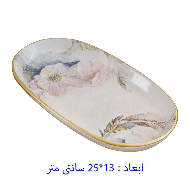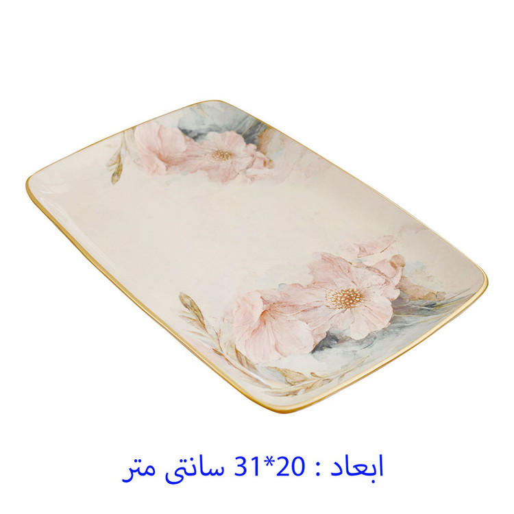 محصول کشور ترکیه - شامل 6 عدد بشقاب صبحانه خوری 19 سانتی متری - 4 عدد پیاله 11 سانتی متری - 1عدد سینی (دیس)20x31 سانتی متر - دو عدد دیس بیضی 11x20 سانتی متر و 2عدد دیس بیضی 25x13 سانتی متر میباشد