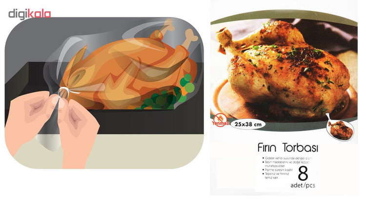کیسه پخت مرغ ، ماهی و گوشت ساخت کشور ترکیه مارک نروکس تولید شده با جدیدترین استانداردهای صنعتی، بهداشتی و غذایی اروپایی تعداد 8 کیسه در هر بسته به همراه گیره جهت گره زدن کیسه موقع پخت و پز اندازه کیسه ها 1×38×25 سانتیمتر می باشند