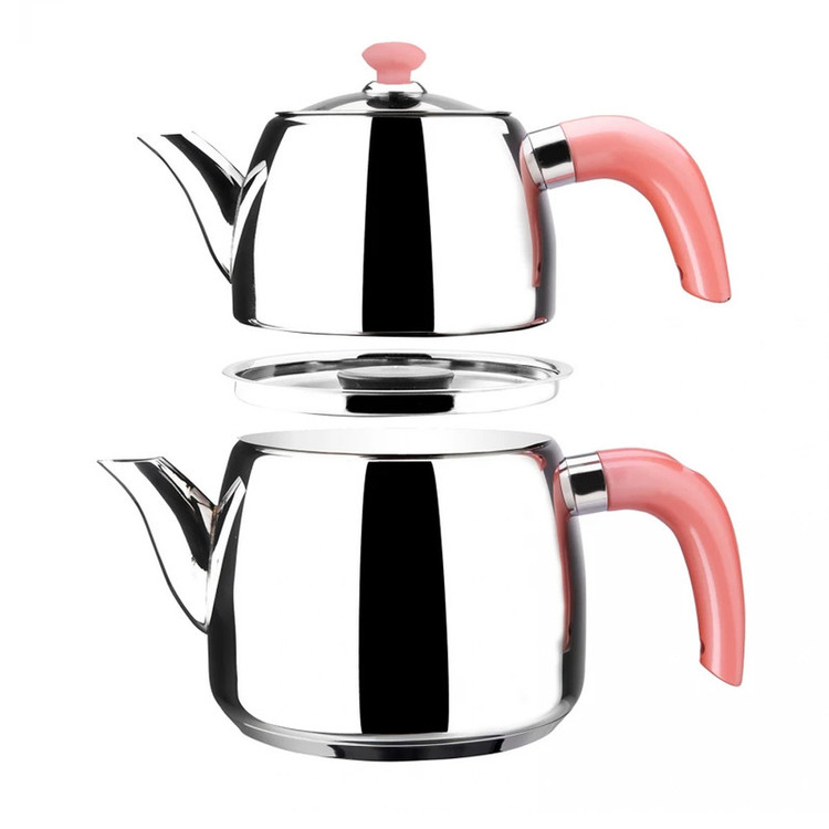 مجموعه ست کتری، قوری و پایه چوبی بامبو مدل گالیا محصولی جدید از کمپانی بزرگ کاراجا ترکیه می باشد، این محصول متفاوت از نظر طراحی و زیبایی نسبت به دیگر محصولات موجود در بازار که در ایده ای جدید همراه با پایه چوبی بامبو روانه بازارهای جهانی شده است، توانسته در مدت بسیار اندکی مشتریان زیادی از ترکیه و اروپا جذب خود نماید، کتری قوری گالیا باکیفیت و زیبا از استیل ضدزنگ نیکل - با روکش کروم 18/10 مرغوب ترین نوع استیل میباشد که از نظر دوام و کیفیت استیل بی نظیر بوده و مادام العمر کیفیت خود را حفظ می نماید. دسته های این محصول شیک و بینظیر از جنس باکالیت که کاملا عایق نچسب و نسوز می باشند تولید شده است. با این محصول دیگران نگران استفاده از کتری و قوری داغ روی سفره، پلاستیک و چیزهایی که گرما به آن آسیب می رساند نباشید، چون پایه چوبی قرار داده شده روی این محصول این مشکلات را برطرف نموده است. کتری این مجموعه دارای درب ایمنی مخصوص می باشد که با برش هایی به منظور تخلیه بخار طراحی شده است که هنگام برداشتن قوری فنر امنیت موجود روی درب از بخار داغی که ممکن است دست و صورت را لمس کند جلوگیری می کند، وقتی قوری دوباره سر جای خود قرار گرفت ، تخلیه بخار به طور خودکار شروع می شود و اطمینان حاصل کنید که چای شما با طعم دلخواه دم می شود. پوشش بخار باعث کاهش 90 درصدی مصرف انرژی می شود و اطمینان حاصل می کند که هم آب کتری شما و هم چای قوری داغ است. به لطف صافی های موجود در قوری و کتری ، می توانید چای های خوشمزه را در مدت زمان بسیار کمتری بدون نیاز به صافی اضافی دم کنید. این کتری و قوری لاکچری برای استفاده روی کلیه اجاق های موجود در بازار مناسب می باشد. کتری 2.1 لیتر و قوری 1.2 لیتر ظرفیت را دارا هستند که در نوع خود عالی می باشند.