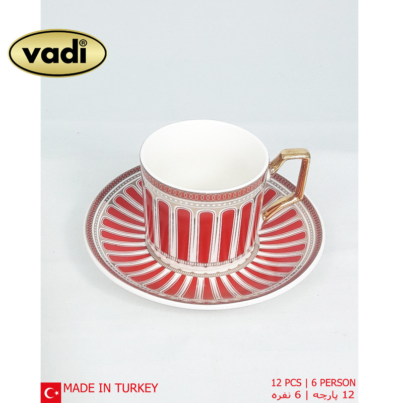 - ست 12 پارچه قهوه خوری وادی - جنس : چینی مقاوم - شامل 6 عدد فنجان و 6 عدد نعلبکی - بسته بندی شیک و جذاب