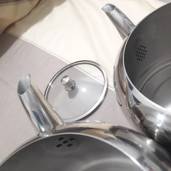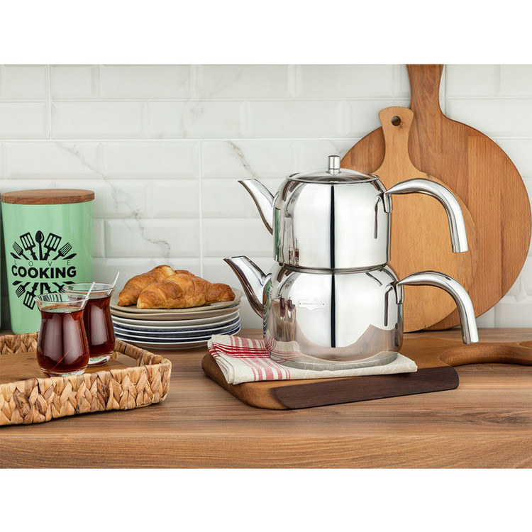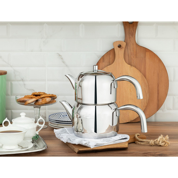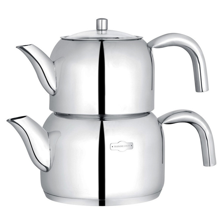 ظرافت را در آشپزخانه خود با ست کتری قوری ورسای مادام کوکو ساخت ترکیه تکمیل کنید. با استفاده از دسته های راحت و طراحی چشم نواز آن، می توانید در طول روز به چای شیکی که می خواهید برسید. محصولات مادام کوکو از سالیان دور جای خود را در خانه و آشپزخانه های مردم جهان باز کرده و همچنان با کیفیت عالی و بینظیر محصولات خود سبب شده تا مشتریان با علاقه وافر جهت تهیه و استفاده از این محصولات اقدام کنند. این محصول سه پارچه دارای یک عدد کتری ، یک عدد قوری و یک عدد درب قوری می باشد. این محصول از ظرفیت عالی برخوردار هست ( کتری 3 لیتر ، قوری 2 لیتر ) که در صورت تعداد بالای نفرات خانواده و مهمانی های خودمانی و حتی جشن های کوچک خیال شما را از بابت تامین چایی در پذیرایی مراسم راحت خواهد نمود و برای همیشه از خرید خود ممنون خواهید بود. جنس محصول تضمینی و مادام العمر می باشد که از استیل ضدزنگ 18/10 با آبکاری کروم نیکل تولید شده است. ضمنا این محصول کتری و قوری هر دو دارای فیلتر داخلی دائمی دارند که موقع ریختن چایی نیازی به هیچ صافی و ابزار اضافی نمی باشد.