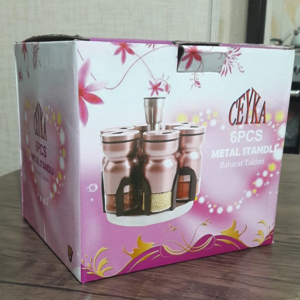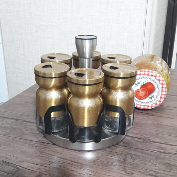 ست 7 پارچه CEYKA ساخت : ترکیه دارای سیستم پایه چرخشی کامل به هر دو طرف سری جا ادویه ها بسیار نرم و روان هستند سری قابل تنظیم در چهار حالت مختلف جنس پایه از استیل ضدزنگ جنس بدنه از شیشه مقاوم