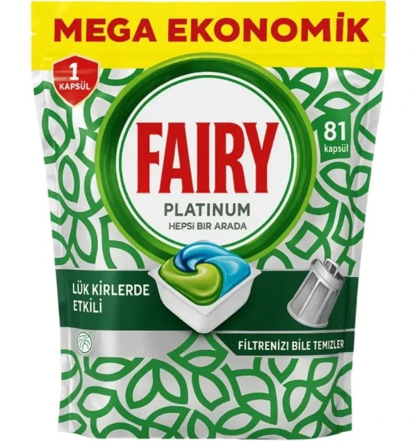قرص ماشین ظرفشویی فیری مدل PLATINUM Hepsi Bir Arada بسته 81 عددی با فرمولاسیون قوی، محصولی کارا برای شستشوی بی نقص ظروف و محافظت از عمر مفید ماشین ظرفشویی می باشد. این محصول با قدرت شویندگی قدرتمند و محتویات کمک شستشو، بدون باقی گذاشتن لکه و چربی ظروف را به طور کامل تمیز و درخشان می کند و استفاده بسیار راحت و آسانی دارد. همچنین با چربی زدایی فیلتر و قسمت های پنهان ماشین ظرفشویی باعث افزایش عملکرد دستگاه و کاهش هزینه تعمیرات آن می گردد.