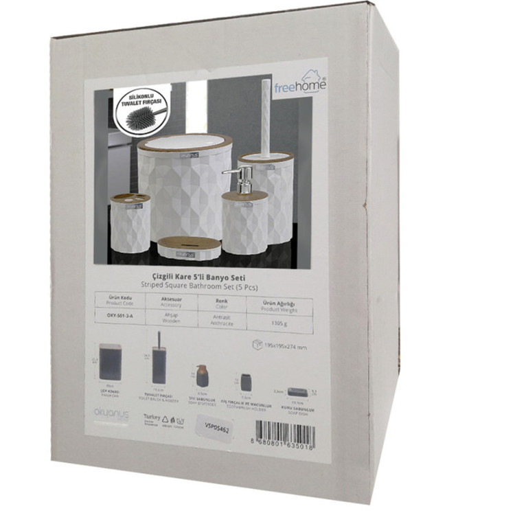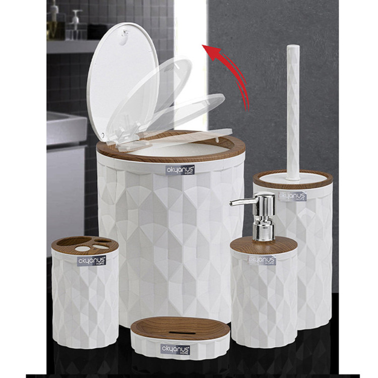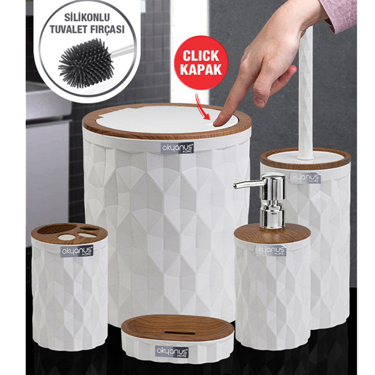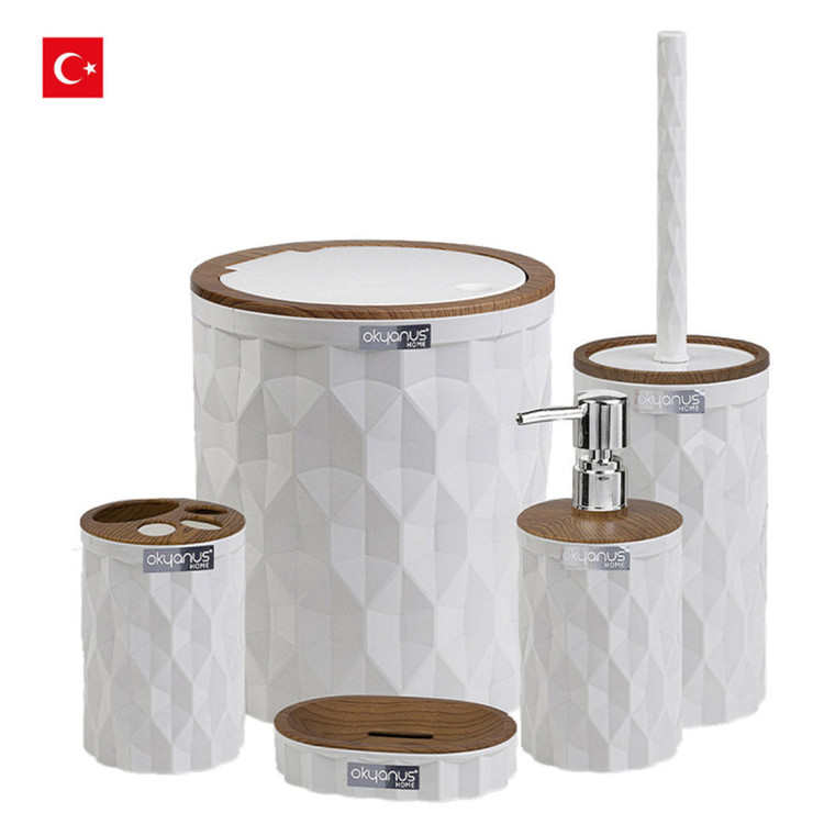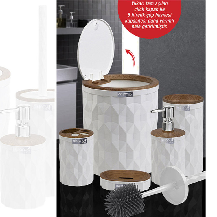 جدیدترین ست سرویس بهداشتی 5 پارچه طرح الماس ساخت اقیانوس ترکیه پیشرو در صنعت بهداشت و لوازم خانگی، این ست 5 پارچه تمام نیازهای موجود در حمام و سرویس های بهداشتی را برطرف می نماید، محصولی بسیار کاربردی به همراه کیفیت و زیبایی. این مجموعه زیبا از آکریلیک تولید شده است که ماندگاری بسیار بالایی دارد. دارای استانداردهای ایمنی و سلامت بهداشت انسان از اروپا را دارد و محصولی صادراتی به اروپا می باشد. شامل سطل درب دار، فرچه و ظرف مخصوص آن، جا مسواکی، جامایع پمپی و جاصابونی می باشد.تمامی اقلام قابلیت شستوشو دارند و میتوانید با خیالی آسوده، آنها را بشویید. با این ست بهداشتی مدل الماس زیبایی محیط و سرویس ها چندین برابر میشود.