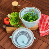سبزی خشک کن دستی قاندول GONDOL مدل G25 ساخت ترکیه با کیفیت جنس عالی و طراحی و نمای زیبا یکی از مهمترین و کاربردی ترین لوازم آشپزخانه بشمار می رود. کار با این دستگاه بسیار راحت و جذاب بوده و کارایی عالی دارد. از این رو نیاز واقعی هر آشپزخانه و آشپز خوش سلیقه ای می باشد. این محصول از پلاستیک درجه یک مقاوم با استانداردهای بهداشتی و صنعتی اروپایی TÜV اتریش تولید شده و فاقد ماده شیمیایی بی پی ای که مضر سلامتی انسان است می باشد.این دستگاه بسیار نرم و روان کار کرده و باعث عدم آسیب رساندن به کیفیت میوه، سبزیجات و ... می شود. ظرفیت بزرگ این محصول 4.5 لیتر است که در نوع خود عالی می باشد، دسته روی محصول که با حرکت دادن آن بصورت چرخشی بسیار نرم و روان کار را انجام می دهد. قابلیت نگهداری مواد و سبزیجات را به مدت طولانی دارد، تحمل دمای فریزر تا منفی 25 درجه و قابل استفاده در مایکروفر تا حرارت 95 درجه را دارد. پایه های محصول سیلیکونی هستند که موقع استفاده کاملا چسبیده به سطح میز بوده و هرگز سر نمیخورد. کمپانی GONDOL از بزرگترین صادرکنندگان لوازم خانه و آشپزخانه به اروپا می باشد.