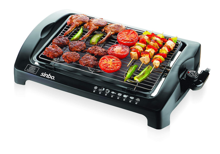 باربیکیو یا کباب پز برقی وسیله ایست که به راحتی می توان بد.ن دود و بوی تند، در داخل محل سکونت یا فضاهایی مانند آلاچیق، حیاط یا بالکن منزل جهت کباب یا گریل نمودن انواع مواد غذایی از قبیل گوشت، مرغ، ماهی، سوسیس و سبزیجات از آن استفاده نموده و قابل جابجایی می باشد. کباب پز برقی sinbo ساخت ترکیه است و با توان 2000 وات امکان داغ شدن سریع المنت ها را فراهم می کند. در زیر صفحه کباب پز سینی چکه چربی قرار می گیرد که می توان به منظور جلوگیری از تجمع زیاد دود و بو داخل آن آب ریخت. تمامی قطعات این دستگاه قابل جدا شدن از هم بوده و می توان آن ها را به راحتی شستشو نمود.