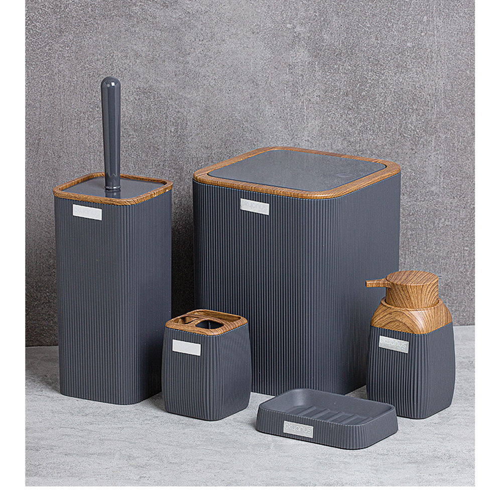 ست سرویس بهداشتی 5 پارچه حاضر از از جدیدترین ست های ساخت فری هوم ترکیه - پیشرو در صنعت بهداشت و لوازم خانگی - است. این ست 5 پارچه تمام نیازهای موجود در حمام و سرویس های بهداشتی را برطرف می نماید و محصولی بسیار کاربردی به همراه کیفیت و زیبایی است. این مجموعه زیبا از آکریلیک تولید شده است که ماندگاری بسیار بالایی دارد. ست حاضر استانداردهای ایمنی و سلامت بهداشت انسان از اروپا را داراست و محصولی صادراتی به اروپا می باشد. این ست 5 پارچه شامل سطل درب دار، فرچه و ظرف مخصوص آن، جا مسواکی، جا مایع پمپی و جا صابونی می باشد. تمامی اقلام قابلیت شستوشو دارند و میتوانید با خیالی آسوده، آنها را بشویید. با این ست بهداشتی، زیبایی محیط و سرویس ها چندین برابر می شود.