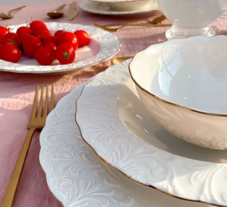 6 عدد پلوخوری / 6 عدد خورشت خوری / 6 عدد پیشدستی / 6 عدد پیاله / 2 عدد دیس