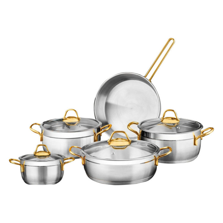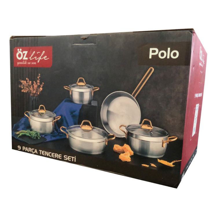 سرویس پخت و پز 9 پارچه اوزلایف مدل Polo دستگیره طلایی