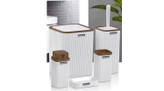 ست سرویس بهداشتی 5 پارچه حاضر از از جدیدترین ست های ساخت فری هوم ترکیه - پیشرو در صنعت بهداشت و لوازم خانگی - است. این ست 5 پارچه تمام نیازهای موجود در حمام و سرویس های بهداشتی را برطرف می نماید و محصولی بسیار کاربردی به همراه کیفیت و زیبایی است. این مجموعه زیبا از آکریلیک تولید شده است که ماندگاری بسیار بالایی دارد. ست حاضر استانداردهای ایمنی و سلامت بهداشت انسان از اروپا را داراست و محصولی صادراتی به اروپا می باشد. این ست 5 پارچه شامل سطل درب دار، فرچه و ظرف مخصوص آن، جا مسواکی، جا مایع پمپی و جا صابونی می باشد. تمامی اقلام قابلیت شستوشو دارند و میتوانید با خیالی آسوده، آنها را بشویید. با این ست بهداشتی، زیبایی محیط و سرویس ها چندین برابر می شود.