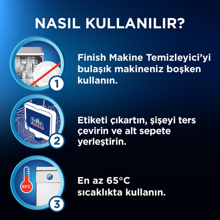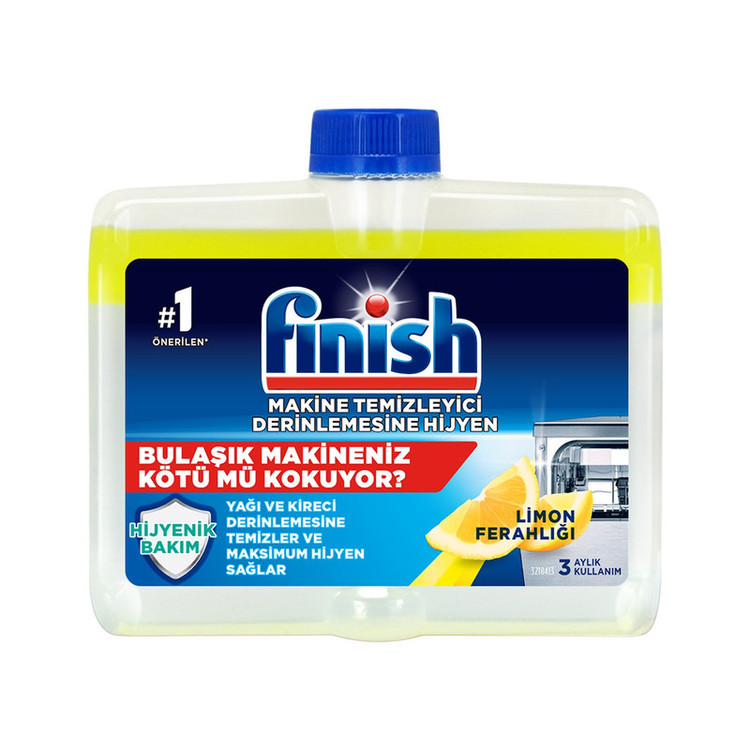 برای تمیزکردن ماشین ظرفشویی، استفاده از مایع تمیزکنندهی فینیش «Finish» یکی از بهترین گزینههاست. این مایع آبیرنگ و زرد رنگ ، قابلیت چربیزدایی و جلوگیری از تشکیل رسوبات آهکی در ماشین ظرفشویی را دارد. برای راحتشدن از دست چربی و رسوبات پنهانشده در ظرفشویی، میتوان از این محصول 250 میلیلیتری استفاده کرد. محلول تمیزکنندهی فینیش دارای یک لایهی آبیرنگ با قدرت چربیزدایی بالاست که بهعلت چگالی کم، بالای لایهی سفیدرنگ قرار گرفته است. این لایهی سفیدرنگ جهت جلوگیری از رسوب آهک و درخشندگی ماشین ظرفشویی استفاده میشود. هر ماه یکبار، باید زمانی که ماشین ظرفشویی خالی است، در پلاستیکی مایع تمیزکنندهی فینیش را باز کرد و آن را به صورت سروته و وارونه در طبقهی بالایی ماشین ظرفشویی گذاشت و طولانیترین برنامهی شستوشو یا برنامهای با دمای بالا را انتخاب و ماشین را روشن کرد. مایع با شروع به کار ماشین به اطراف پخش میشود و به طور فوقالعادهای همهی قسمتهای ماشین را رسوبزدایی و تمیز میکند. با استفاده از مایع تمیزکنندهی فینیش علاوه بر تمیزشدن و چربیزدایی ماشین ظرفشویی، ظرفها براق شده و بوی نامطبوع ماشین از بین خواهد رفت. فینیش از سال 1953 میلادی، تولیدکنندهی محصولات شوینده بوده است. این شرکت با بیش از شصت سال سابقه در چهل کشور دنیا فعالیت میکند؛ همچنین جهت کسب نتیجهی بهتر به همکاری با شرکتهای تولیدکنندهی لوازم و دستگاههای شویندهی خانگی نظیر Bosch ، Beko ، AEG ، Siemens ، Hoover ، Haier ، LG و... اقدام کرده است.