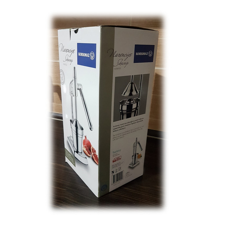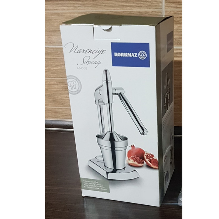 آبمیوه گیری دستی اهرمی ، کرکماز محصولی از برند معروف با شهرت جهانی کرکماز ترکیه بوده با طراحی ساده اما کاربردی که به شما این امکان را می دهد بدون نیاز به برق یا باتری تنها با کمک از نیروی دست خود و به راحتی، آب انواع میوه ها از جمله انار، پرتقال، لیمو و ... را بگیرید. و انرژی و ویتامین روزانه مورد نیاز بدن را بدست آورید این آبمیوه گیری دارای بدنه ای از جنس آلومینیوم ریخته گری با روکش کوروم بسیار براق و ضد زنگ می باشد که علاوه بر استحکام بالا، دارای طراحی کاربردی و ساده با امکان شستشوی آسان نیز می باشد.