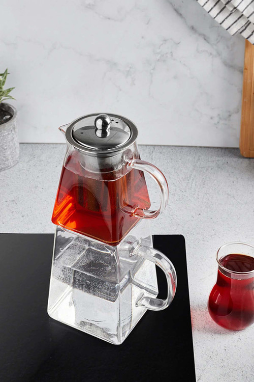 داخل قوری یک صافی استیل وجود دارد.