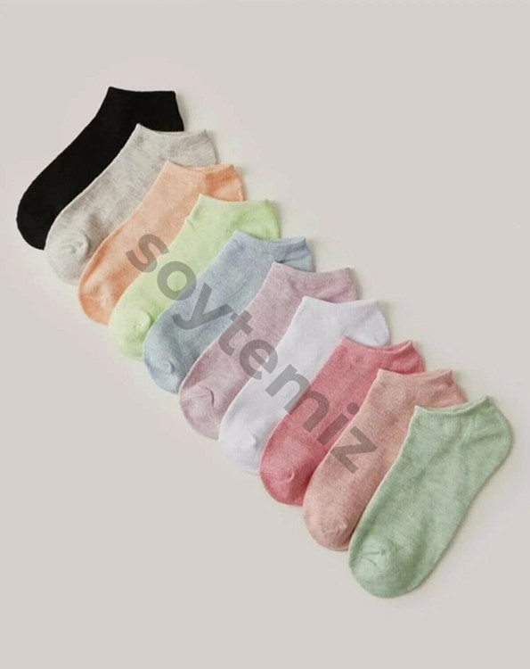 جوراب زنانه سوی تمیز بسته 10عددی مدل رنگارنگ