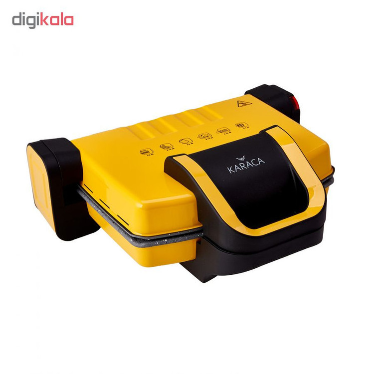 گریل کاراجا مدل ASSPECIAL COOKPLUS محصولی بسیار با کیفیت و کاربردی است. این دستگاه برقی میتواند برای مصارف مختلفی مورد استفاده قرار گیرد. گریل کاراجا با ساختاری که دارد میتواند برای تهیه غذاهای ساده مانند ساندویچهای گرم تا غذاهای حرفهای مانند استیک و کبابهای باربکیو استفاده شود. طراحی در آن بهگونهای است که میتواند بر روی نان ساندویچ فشار وارد کرده و با حرارتی که دارد آن را گرم کرده، پنیر را آب کند و ساندویچی خوشمزه تهیه نماید. همچنین در این مدل قابلیت باز شدن کامل در نیز هست بهاینترتیب میتوان از یک گریل بزرگتر بهره برد چراکه هم کف و هم در قابلیت داغ شدن دارند. صفحات این دستگاه قابلیت جدا شدن و شستشو در ماشین ظرفشویی را نیز دارند. دمای در و کف دستگاه بهصورت مجزا قابل تنظیم است. چراغ نشانگر دمای دستگاه نیز به کاربر برای آمادهسازی گریل کمک میکند. دستگاه را بعد از استفاده و پس از خنک شدن میتوان بهصورت عمودی در کابینت یا کمدها نگهداری کرد تا فضای کمتری اشغال کند. کاراجا تولید و عرضهکننده لوازم برقی و خانگی ترکیه ای است که در سراسر جهان شناختهشده است و با ارائه محصولات کاربردی متنوع همواره نوآور بوده است. ساندویچ ساز و گریل کاراجا با قابلیت کار در 220-240 ولت با توان 1800 وات به عنوان توستر و گریل قابل استفاده میباشد .قسمت بالایی قابلیت باز شدن تا 180 درجه را دارد .دارای صفحه نچسب و قابل شستشو ، دکمه تنظیم گرما که در زمان کم به دمای دلخواه میرسد . دارای اتصال کوتاه برای امنیت بالای دستگاه ، امکان آماده کردن4 توست در یک مرحله از قابلیت های دیگر این دستگاه می باشد .