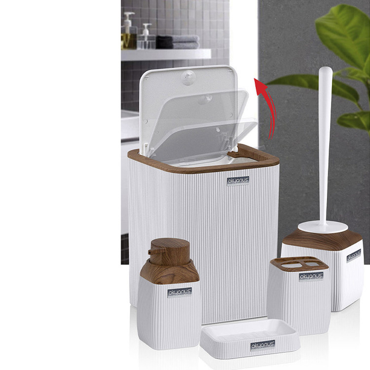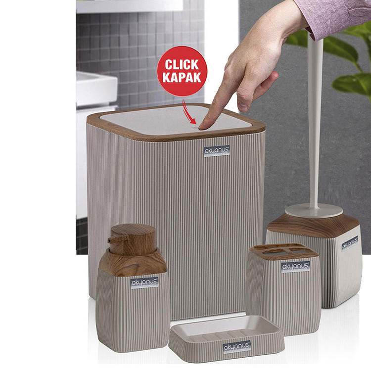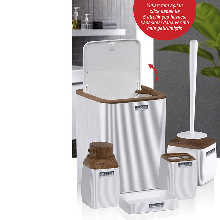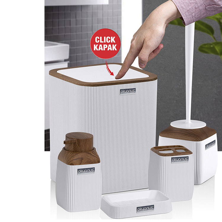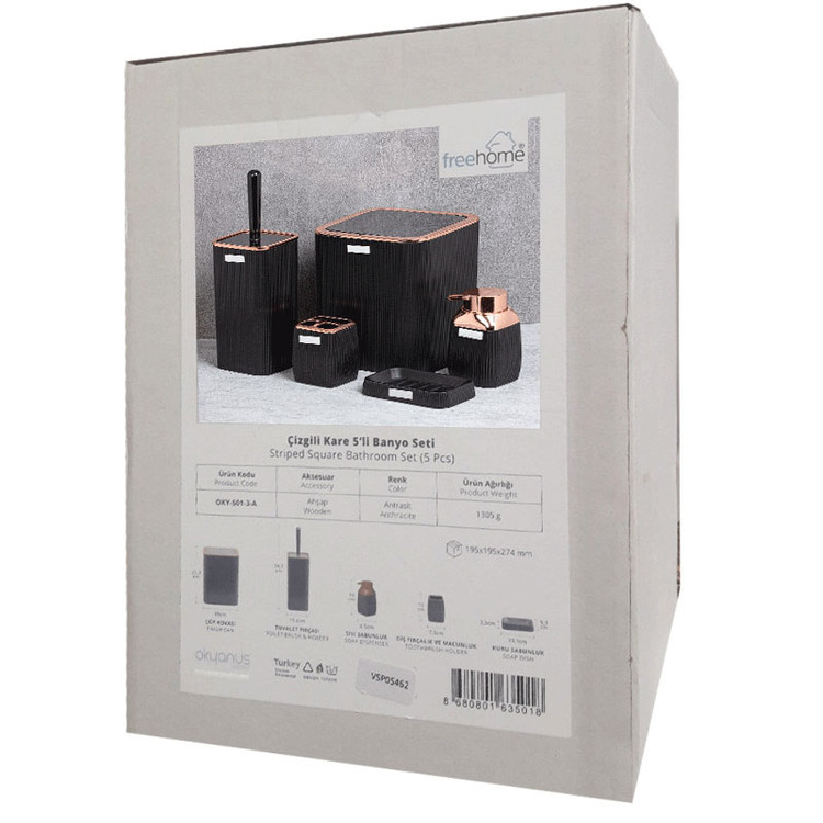 جدیدترین ست سرویس بهداشتی 5 پارچه ساخت فری هوم ترکیه پیشرو در صنعت بهداشت و لوازم خانگی، این ست 5 پارچه تمام نیازهای موجود در حمام و سرویس های بهداشتی را برطرف می نماید، محصولی بسیار کاربردی به همراه کیفیت و زیبایی. این مجموعه زیبا از آکریلیک تولید شده است که ماندگاری بسیار بالایی دارد. دارای استانداردهای ایمنی و سلامت بهداشت انسان از اروپا را دارد و محصولی صادراتی به اروپا می باشد. شامل سطل درب دار، فرچه و ظرف مخصوص آن، جا مسواکی، جامایع پمپی و جاصابونی می باشد.تمامی اقلام قابلیت شستوشو دارند و میتوانید با خیالی آسوده، آنها را بشویید. با این ست بهداشتی، زیبایی محیط و سرویس ها چندین برابر میشود.